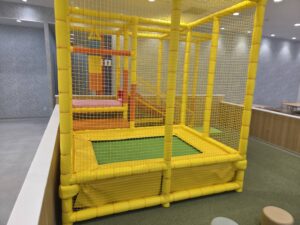 こちらの企業様のご依頼で子ども大好きトランポリンやすべりだいを設置しております。