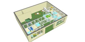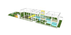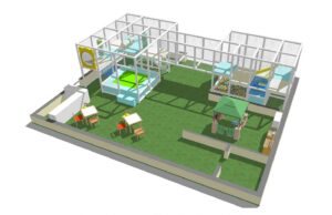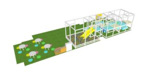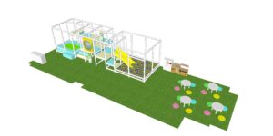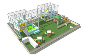 周りには、隠れ家的なおうちを置いたり、イスやテーブルをおいて一休みできる空間があります。